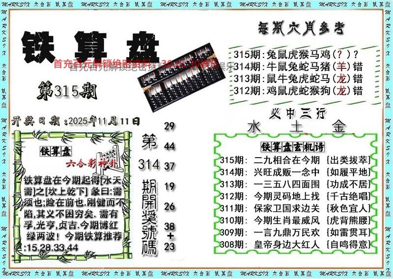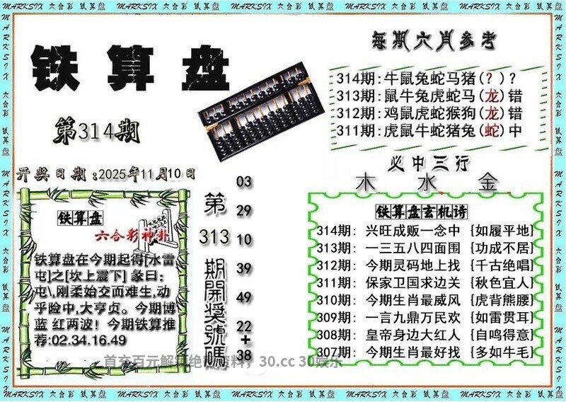 | 314期 | 0.1.2 | 1.4.5.7.8 | 开:羊23中 |